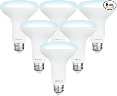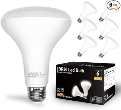 Amazon Basics BR30 LED Light Bulbs, Energy Efficient, Dimmable, E26 Standard Base, 65 Watt Equivalent, 11W, 10,000 Hour Lifetime, Soft White 2700K, 6-Pack of Bulbs