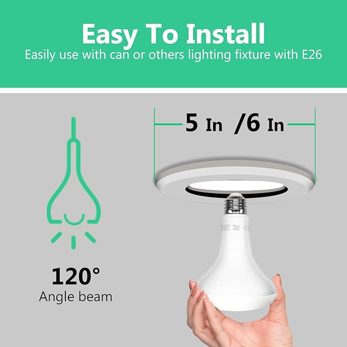 - Wide Applications: DAYBETTER BR30 LED Bulb Fits 5\” or 6” recessed cans.BR30 light bulb with E26 base is suitable for a variety of commercial lighting and home lighting, ideal for bedrooms, kitchens, living rooms and office