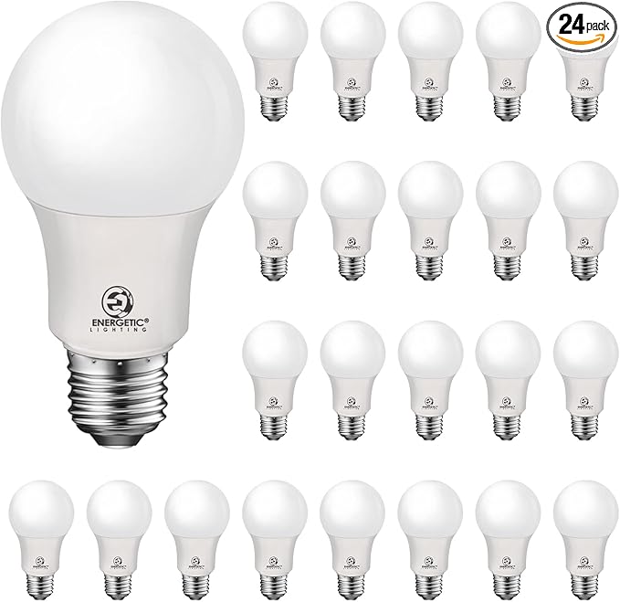 Energetic Lighting 24-Pack A19 LED Light Bulbs 60 Watt Equivalent, Cool White 4000K, E26 Medium Base, Non-Dimmable LED Light Bulb, UL Listed
