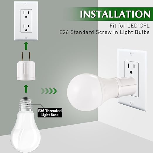 - HANDY ADAPTER -Simply Plug & Play. Plug a bulb directly into existing outlet. Unplug when you want to turn it off. Great for an extra light, temporary light. Pairs well with motion sensor light bulbs in the garage