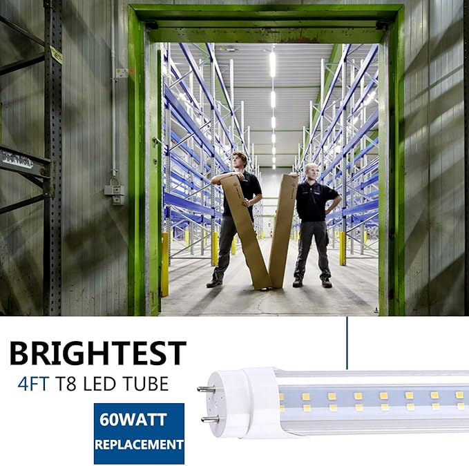 - ✔ EASY INSTALLATION – Can be installed on the traditional G13 4FT T8 lamp socket, bypass the starter and ballast before installation.This 4ft led bulb is double-ended connection. Fast, simple and secure installation.