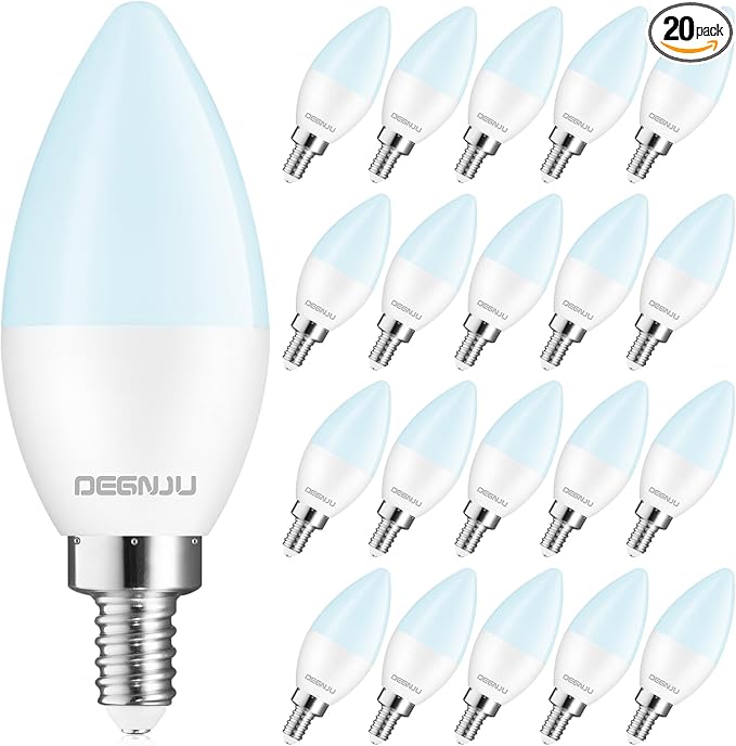 20 Pack Chandelier Light Bulbs 60 Watt Equivalent, Candelabra LED Light Bulbs, E12 LED Bulb Daylight 5000K, Type b Light Bulb 5.5W, Candelabra Base, 120V, B11 Candle Light Bulb, Non-Dimmable