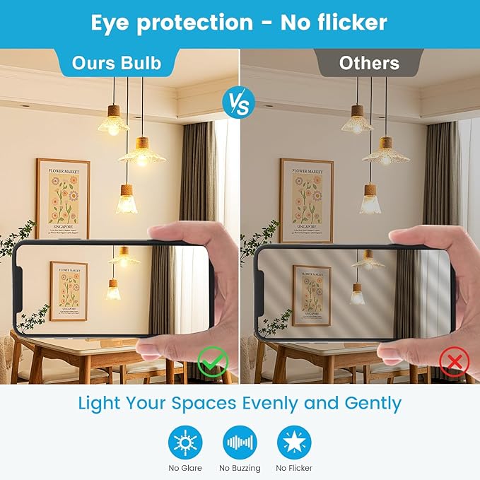 - Longer -Lasting: The soft led light bulbs 100-watt equivalent have excellent heat dissipation system, top-grad LED chip and constant current IC dirver which provided a max. 20years lasting lifespan, you will never need to constantly replace your old bulbs anymore, save your money on frequency of defective traditional bulbs replacement