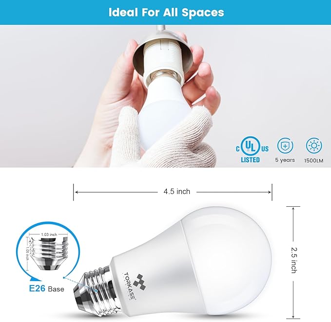 - Quality, Guarantee and Safety: These energy efficient led light bulbs are UL and FCC listed to ensure the world-class quality, worry free to use TORKASE\’s lightbulb for home office or commerical lighting, 5years free return warranty and 10years free replacement, if you encounter any quality issues, please reach out to us at any time, we\’ll stand behind of our product 7/24