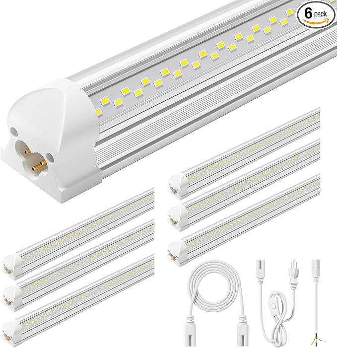 - What You Get— 6x4FT Led Shop Light, 5x59inch Power cords with ON/OFF switch, 10xPower Cords, 10xInstallation accessories, 8×23.6inches Connector cables.